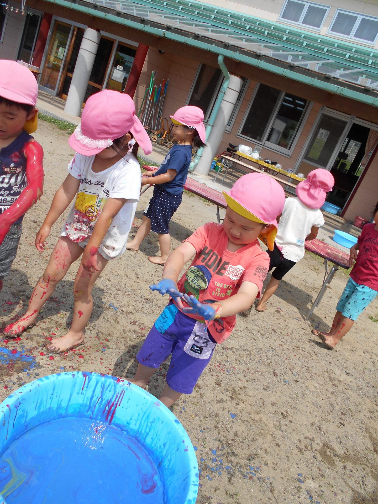 幼児組ボディーペインティング プール開き 育暎保育園 あそびの広場